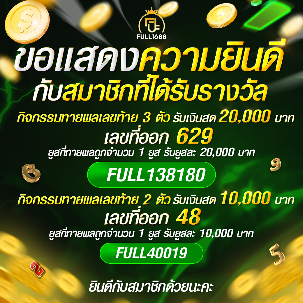 กิจกรรมทายผลเลข 3 ตัวท้าย รับเงินสด 20,000 บาท เลขที่ออก 629